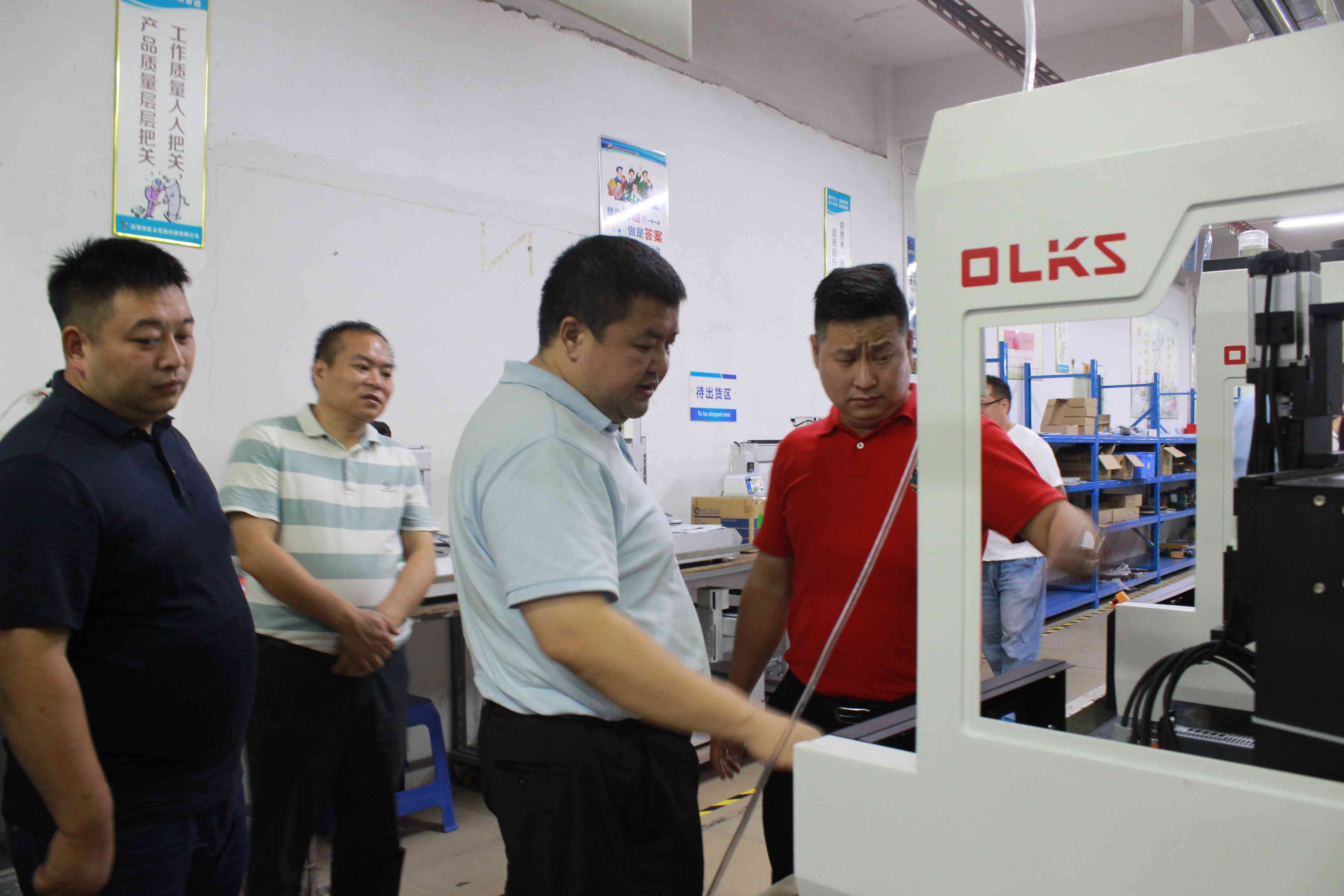 期間,歐力克斯總裁姚利陪同昌江區(qū)委副書(shū)記、區(qū)長(zhǎng)伊文斌一行參觀公司展廳、實(shí)驗(yàn)室、技術(shù)研發(fā)中心、生產(chǎn)中心等。觀看了高端智能點(diǎn)膠機(jī)的打樣測(cè)試過(guò)程,了解了生產(chǎn)流程和銷(xiāo)售市場(chǎng)。