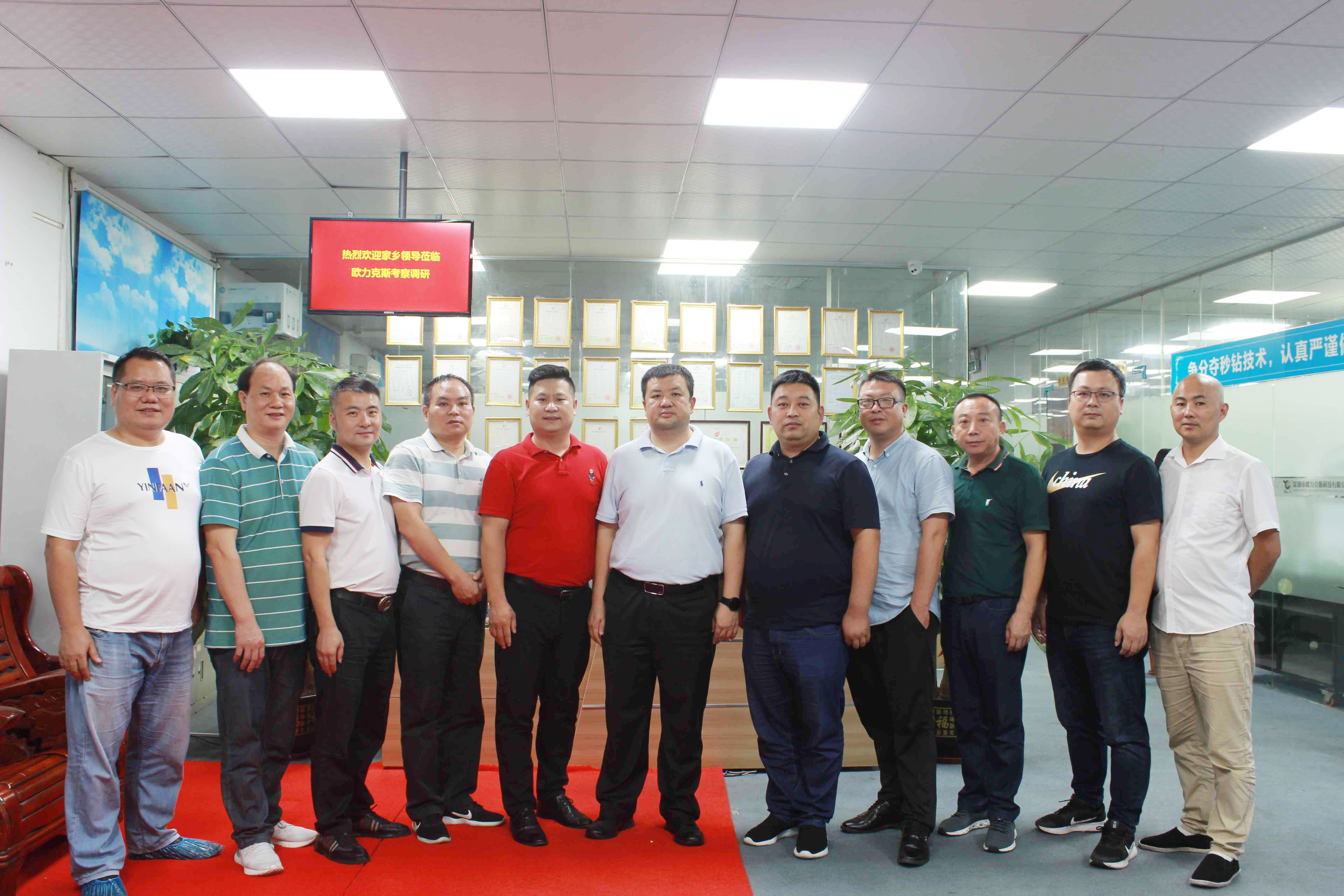 2021年9月17日下午,昌江區(qū)委副書(shū)記、區(qū)長(zhǎng)伊文斌,副區(qū)長(zhǎng)候選人汪維,商務(wù)局局長(zhǎng)甘云云,審計(jì)局局長(zhǎng)馬順保,鲇魚(yú)山鎮(zhèn)招商辦負(fù)責(zé)人蔣隱虎,鲇魚(yú)山鎮(zhèn)駐深圳流動(dòng)黨支部書(shū)記張清龍一行人蒞臨深圳市歐力克斯科技有限公司考察調(diào)研。