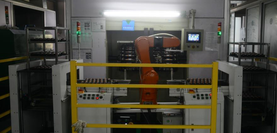 利用歐力克斯六軸機(jī)器人替代工人裝配馬達(dá)轉(zhuǎn)子在自動(dòng)滴膠機(jī)作業(yè),滴膠好后再自動(dòng)取料放入自動(dòng)送料裝置中,采用自動(dòng)來料和送料系統(tǒng),不會因?yàn)楦邷睾彤惷恋纳a(chǎn)環(huán)境而影響到生產(chǎn)和對員工的身體,機(jī)器人可24小時(shí)不間斷工作,提高生產(chǎn)效率,為企業(yè)節(jié)省成本。